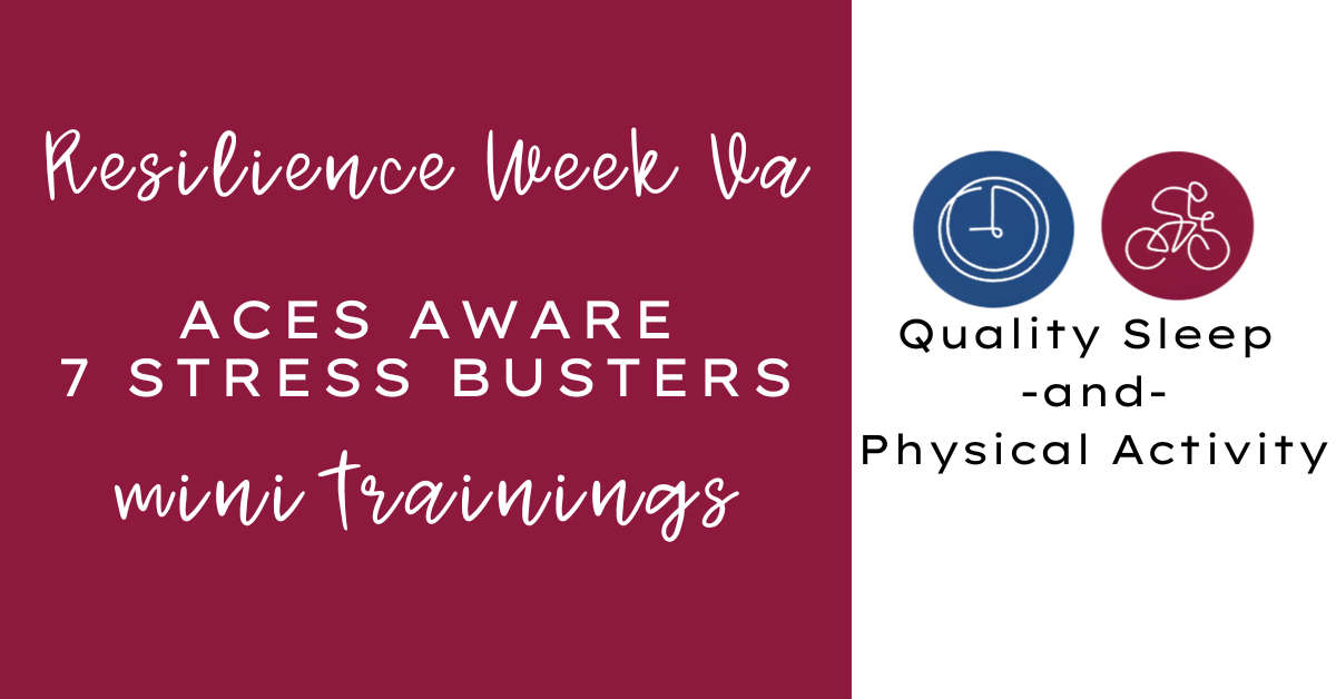 Throughout Resilience Week, Greater Richmond SCAN will be hosting a series of mini trainings highlighting the ACES Aware Stress Busters. During each 30-minute training, we will describe the stress buster and provide examples of how to enact it in practice. Register on Zoom!
